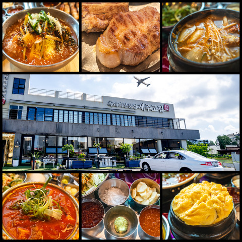 韩国济州岛美食店济州GOZIP离济州机场非常近,内部宽敞,适合80人以上的团体访问。整面玻璃窗设计让客人用餐非常舒适。通过玻璃窗可以实时看到飞机起降的样子,日落后访问的话可以望着正在作业的船上的明亮灯光和夜海和谐的美丽背景,享受别具韵味的气氛。另外离餐厅2分钟的距离有彩虹海岸道路、道头峰、咖啡街和甜点店等,前往附近旅游景点也非常方便,因此非常适合选为济州岛旅游路线。